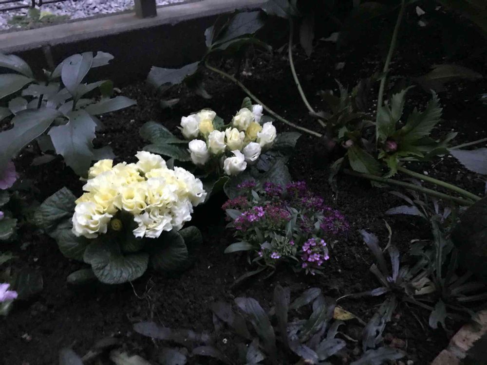 右奥には、クリスマスローズの蕾が膨らんでいます。