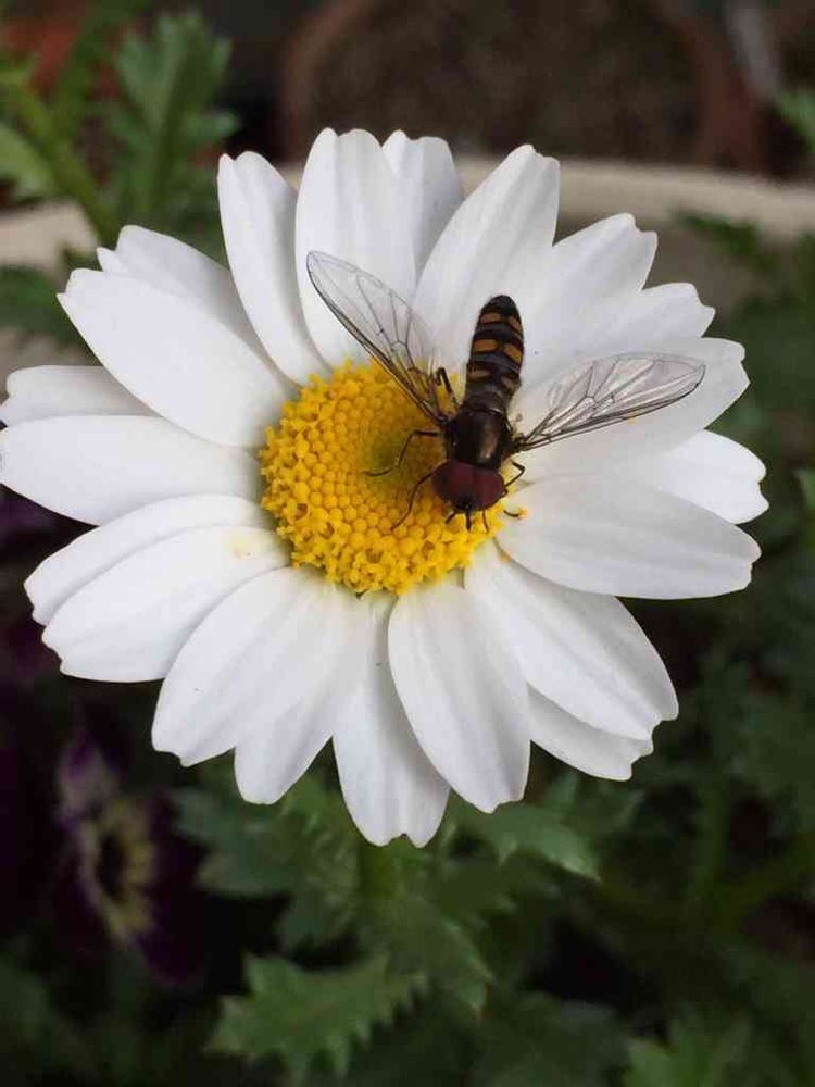 寄せ植えの中のノースポールに、お客様が🐝✨