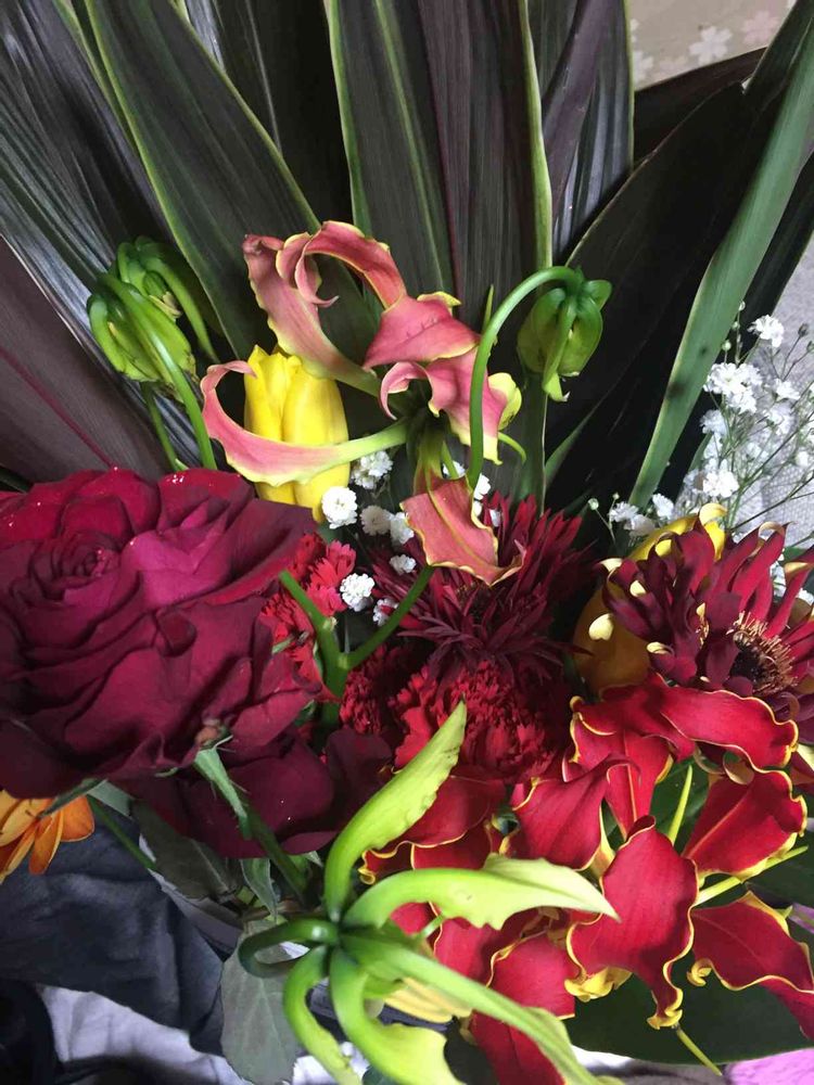 職場に届いた大きなアレンジメント、みんなで分けていいよと言うので少しもらってきた😃