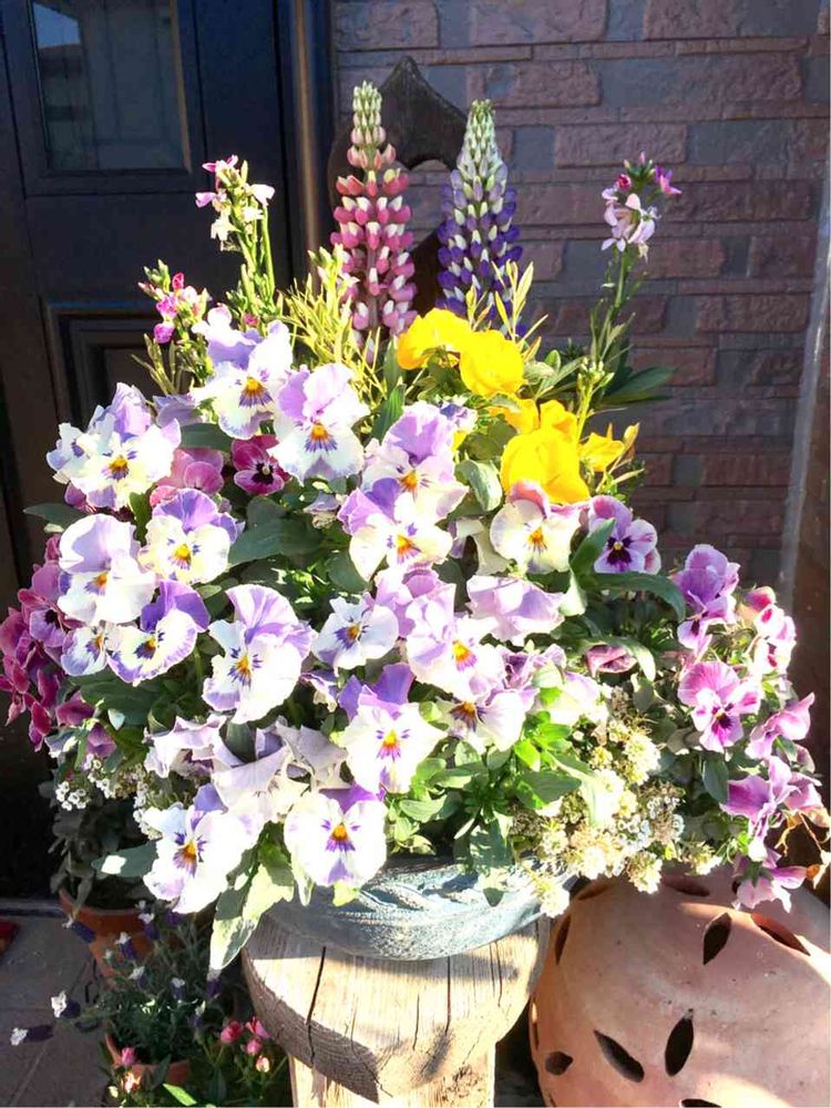 玄関の寄せ植え チューリップのお花🌷が終わってしまったので ルピナスをお迎えしてみました 😋🎶