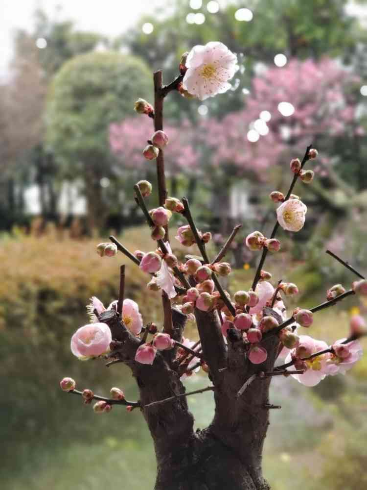 白梅盆栽に一週間遅れで紅梅の盆栽も咲き始めました🌸