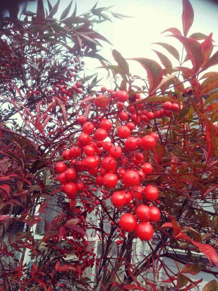 南天の実まだ艶々してますね❗️寒くなると鳥の餌になるんですね☺️