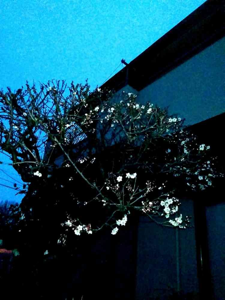 今、仕事帰りに撮りました。暗いけれど、梅です。