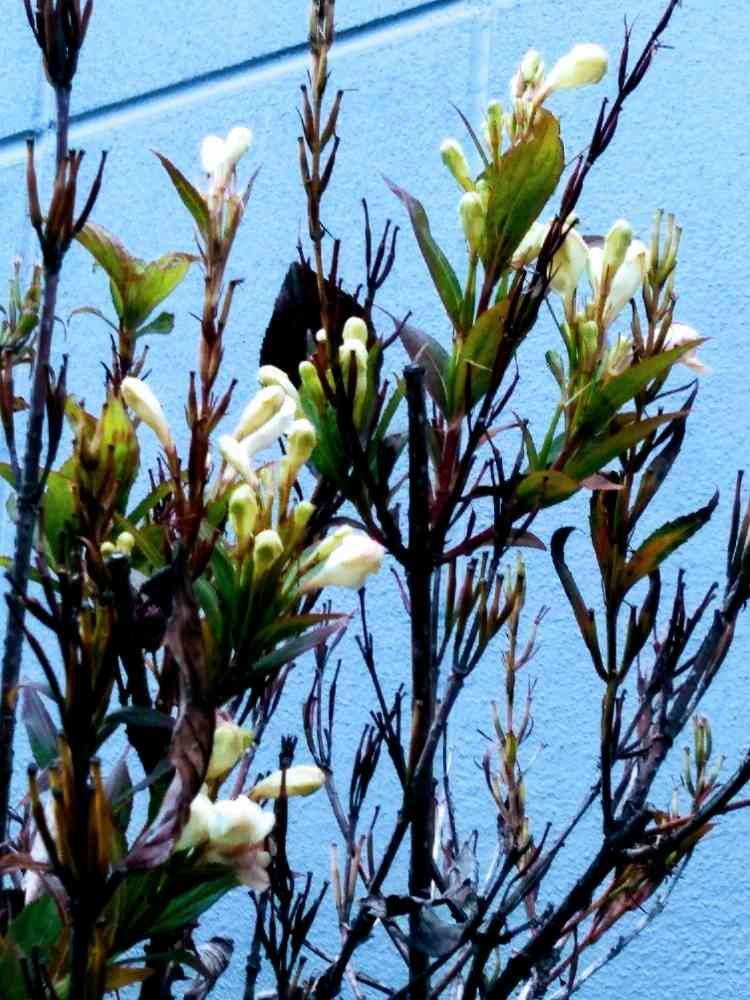 スーパーの駐車場🅿️の花壇に植えて有る、樹木の花の蕾、何の花でしょう?