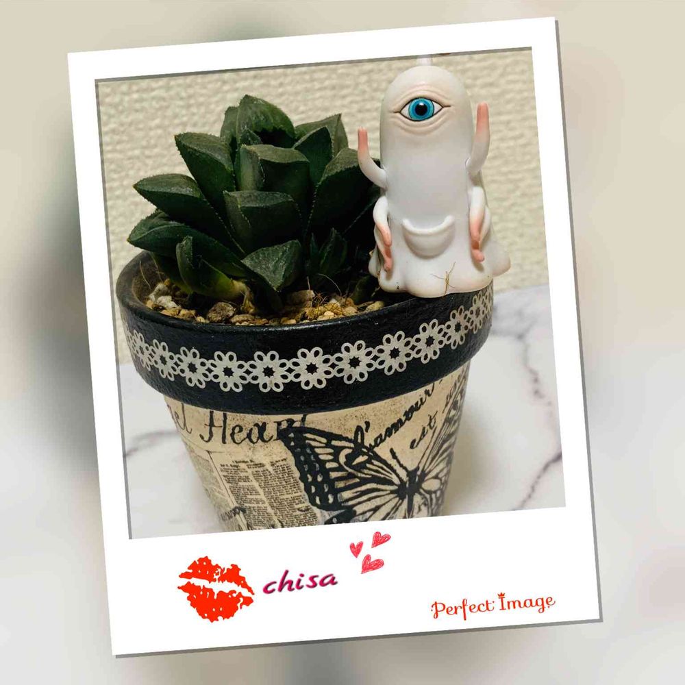 ヒグチユウコさんのひとつ目ちゃんとリメ鉢のイメージがバッチリ!!さすがchisa♡さん❣
