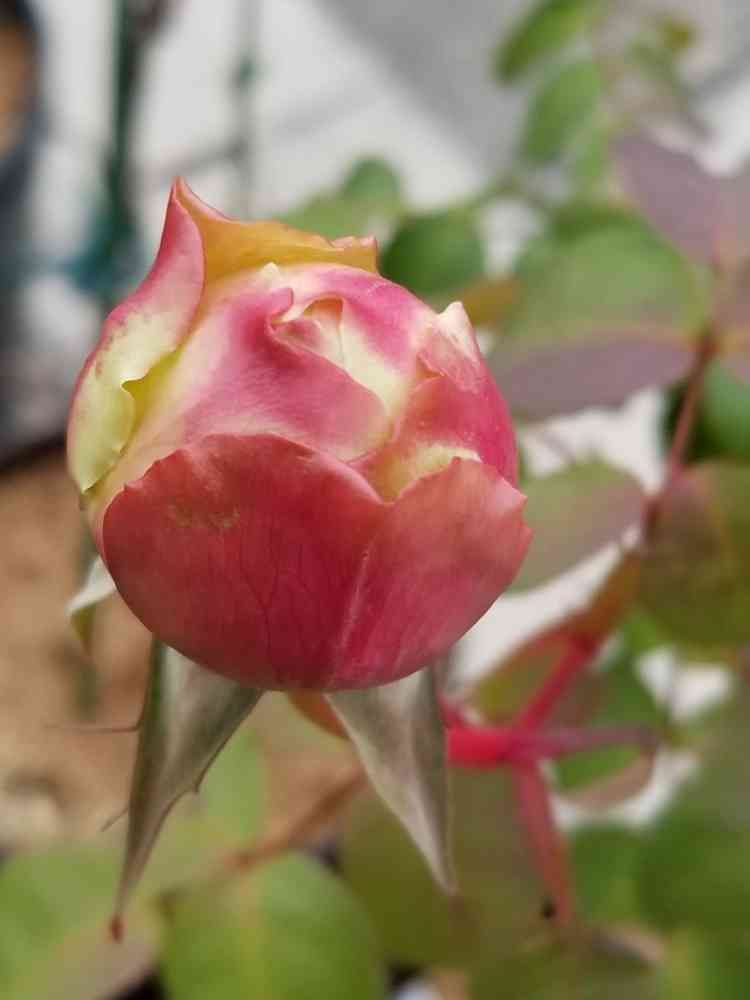 庭のフェンス傍の濃いピンクのミニバラの蕾にも、積もっていました。皆んな頑張れ👊