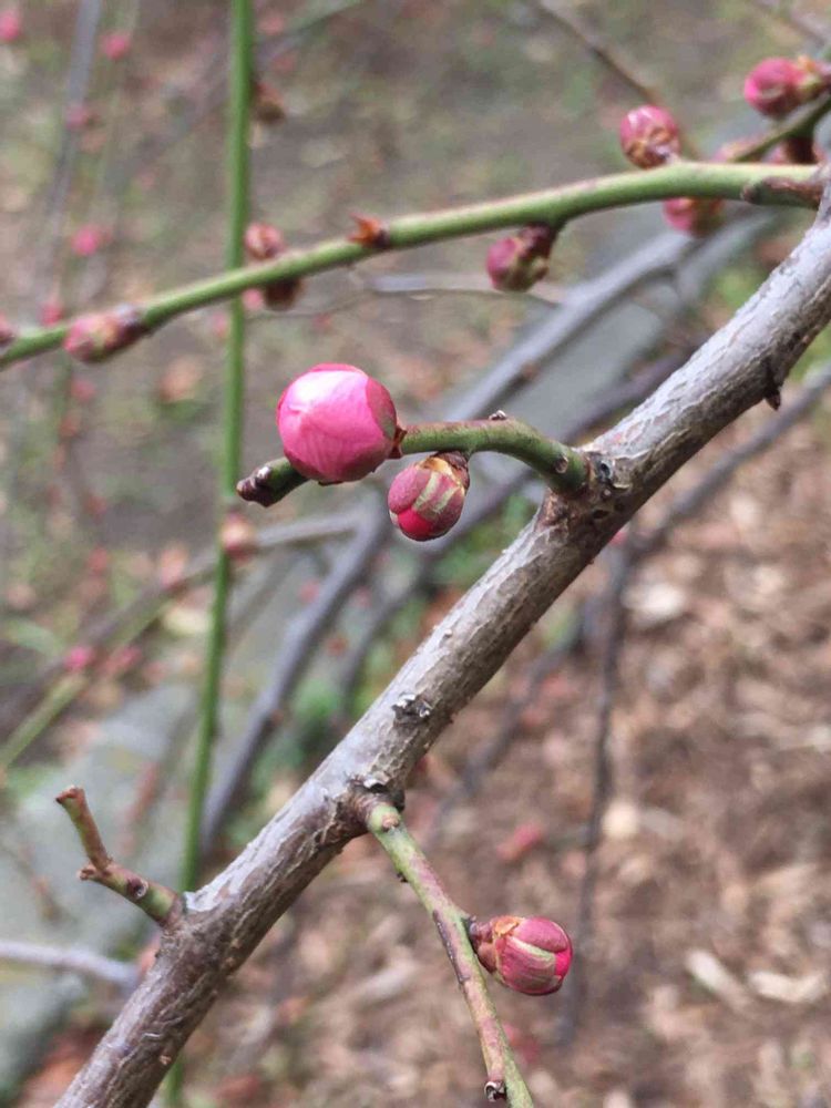名前の通り、垂れた枝に花をつけます。垂れ梅の枝の伸ばし方は、春に花を咲かせたいところから新しい枝を発生させるというもの
