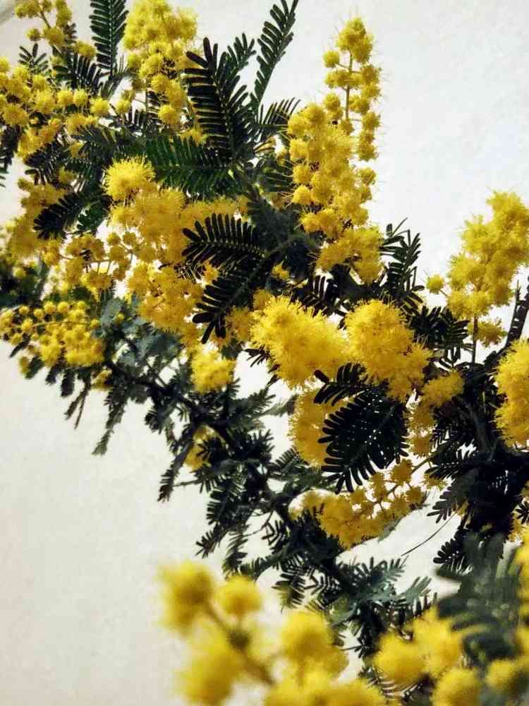 先日、角島に行った時に近くの道の駅で、立派な枝ぶりのミモザが5,6本入って180えん🤩。即買いしました❗
