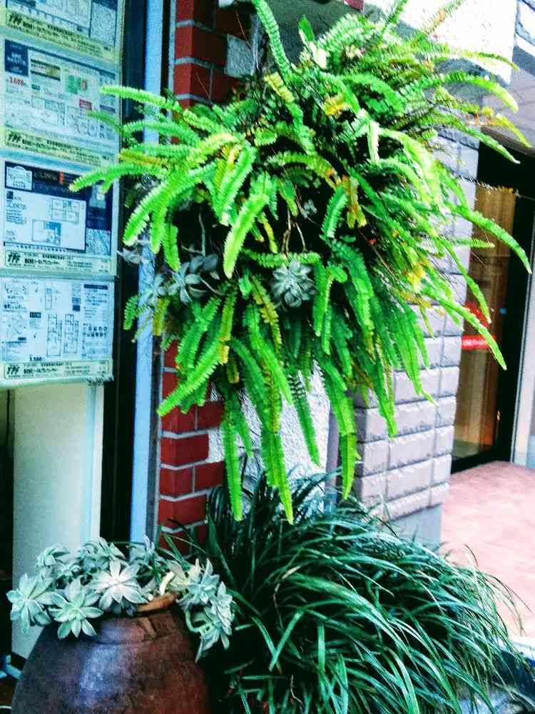 金町の不動産屋さんの前に有る、多肉植物、しのぶ?下は竜の髭かしら?
