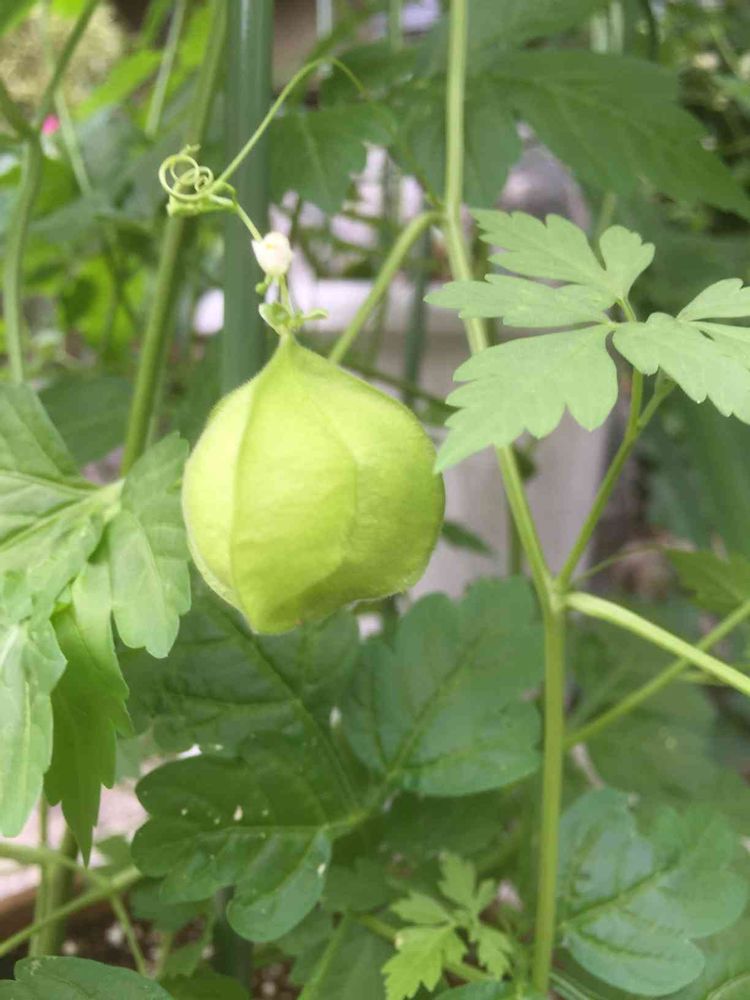 毎年こぼれた種が発芽して白い小さな花が咲き風船がたくたん出来ています。