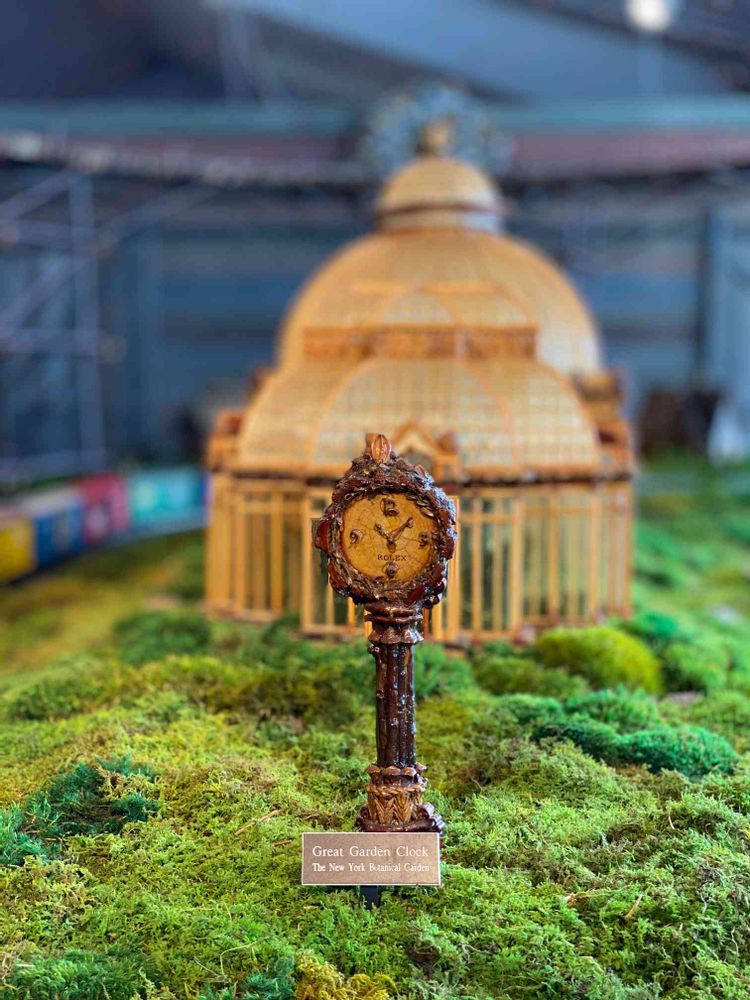 小さな、小さな、駅舎の古時計。木枝や木の実で出来ています。ズームインして見てみてください👀