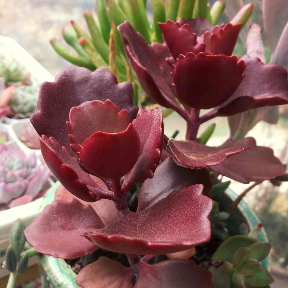 暖冬でエケベリアが昨年ほど紅葉していませんが、カランコエ朱蓮が真っ赤になっていました💕