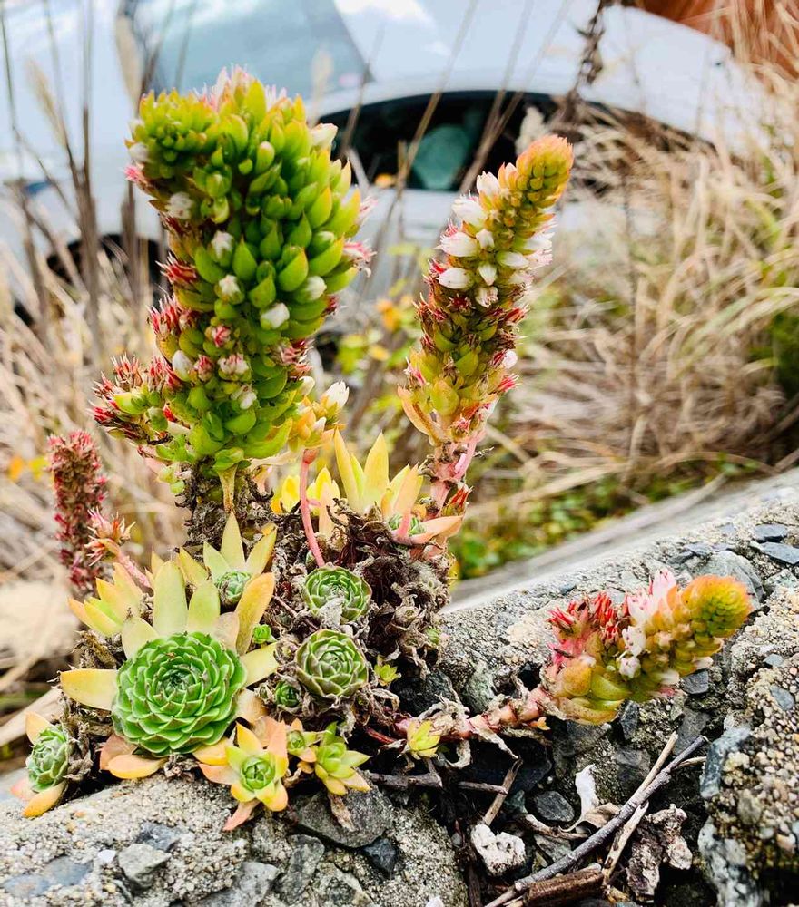 擁壁に定着して逞しく生き抜いているツメレンゲ(オロスタキス・ヤポニカ)😻