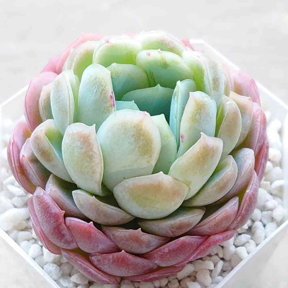 透明感のあるグリーンとピンクのコロンとした多肉さん💚✨💖