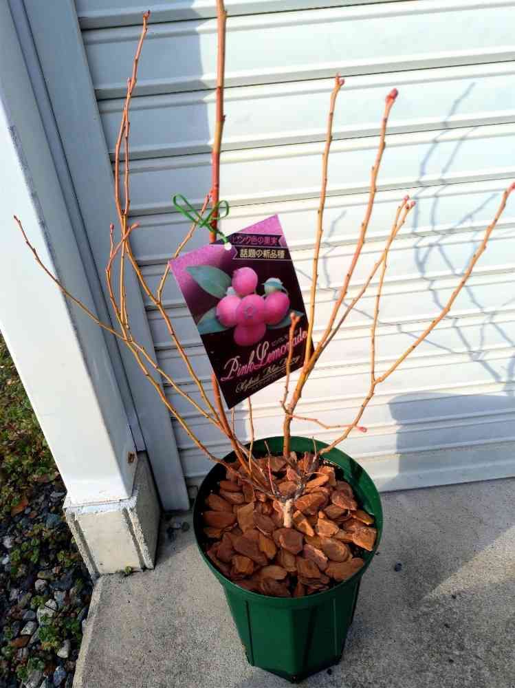 半額とか言われたそりゃお迎えしちゃいますよね…このピンクレモネード、枝っぷりがなかなか見事だったもので。これでうちのピンクブルーベリーは8本、かな?ピンクブルーベリージャムを作れる日も近い!?😂
