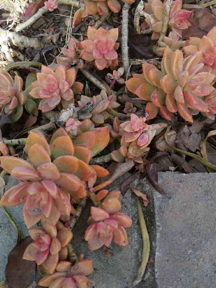 多肉植物の名前は苦手ですが、ブロンズ姫ってゆ〜のですか? 道端で大家族になってました😅。庶民的なお姫様👸です。