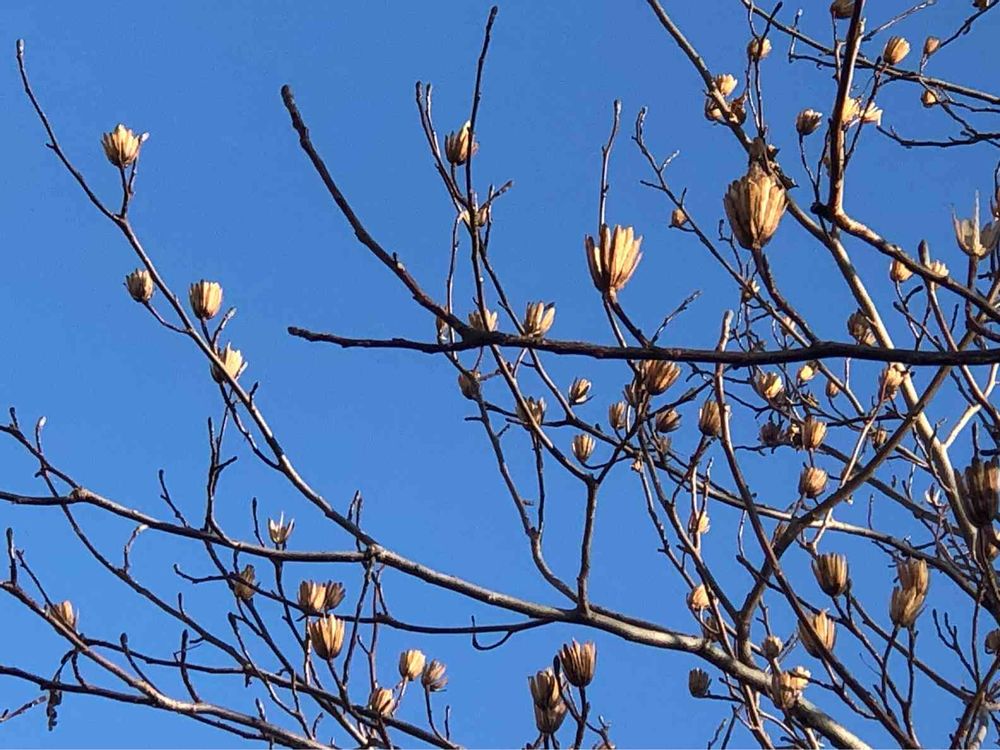 種の殻がまだ枝に残っていてドライフラワーのようですね😊