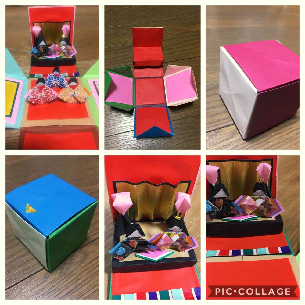 色画用紙で箱を作り、折り紙で親王、三人官女を作りました🎎🎁