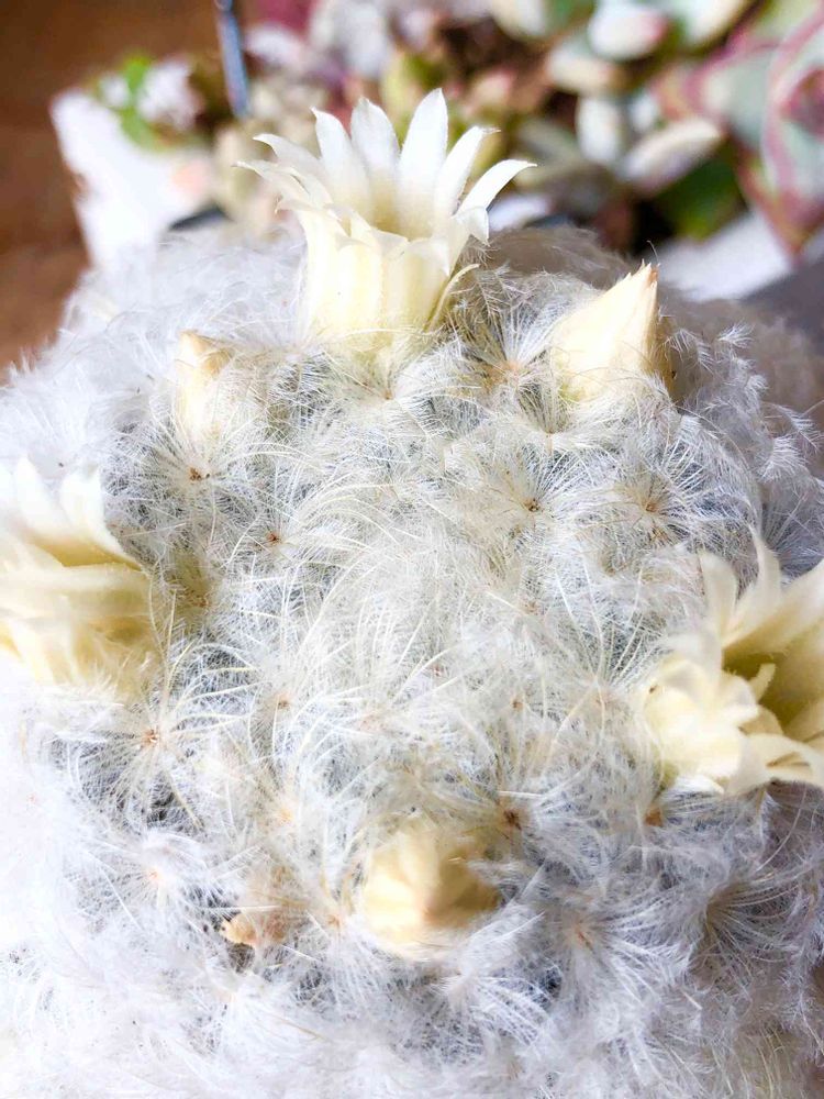 白星さん、見た目以上に柔らかくてもふもふのトゲで、そこに淡いクリーム色の花が出てくるので、とっても可愛いです😍