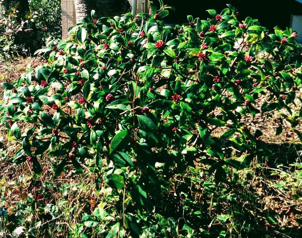 出勤の途中の介護施設の、裏庭にある沈丁花です。もうすぐ開花するかしら?