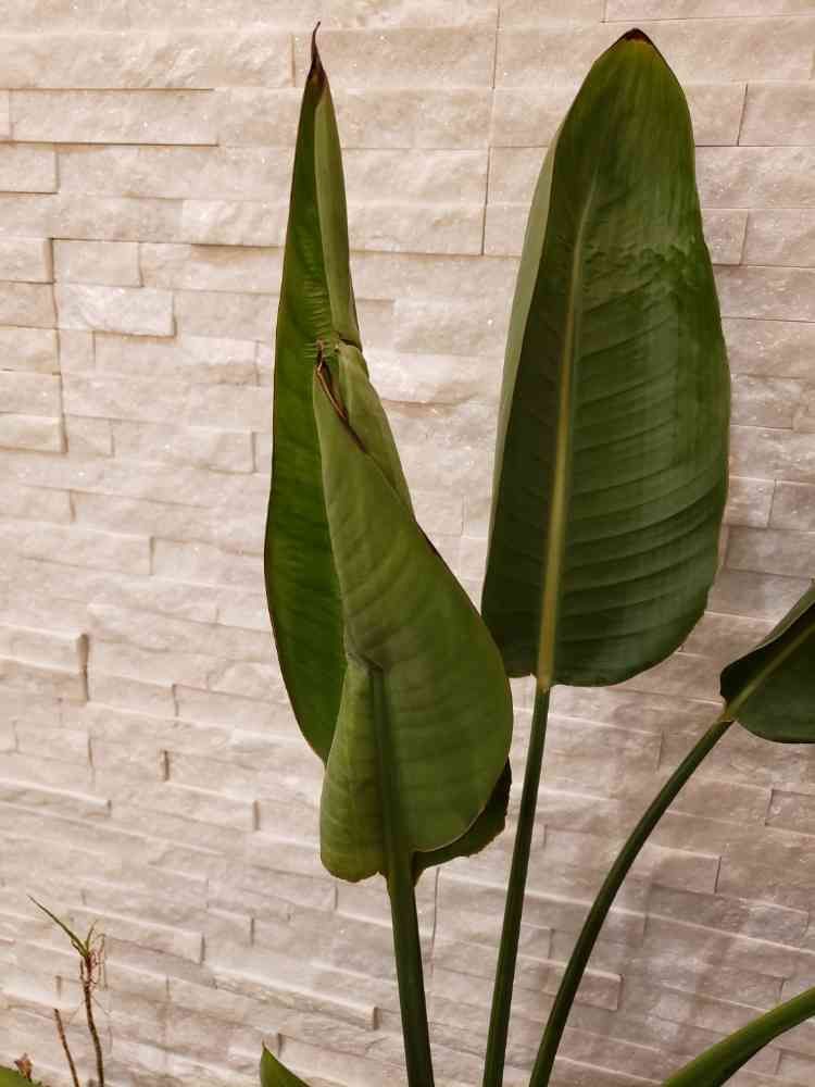 ストレリチアレギネですが、1本の茎に2枚の葉が絡み合って開いています。通常は1枚ずつ葉が開くのですが…