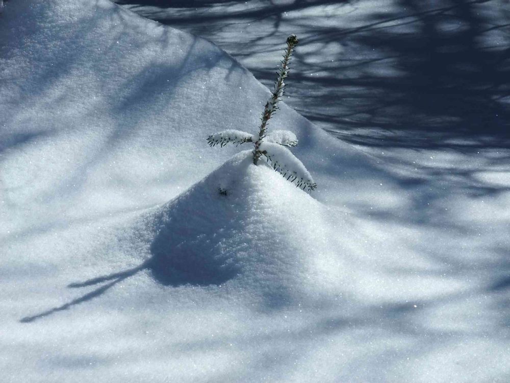 雪の寝床でスヤスヤと、出たばかりの若木くん😊