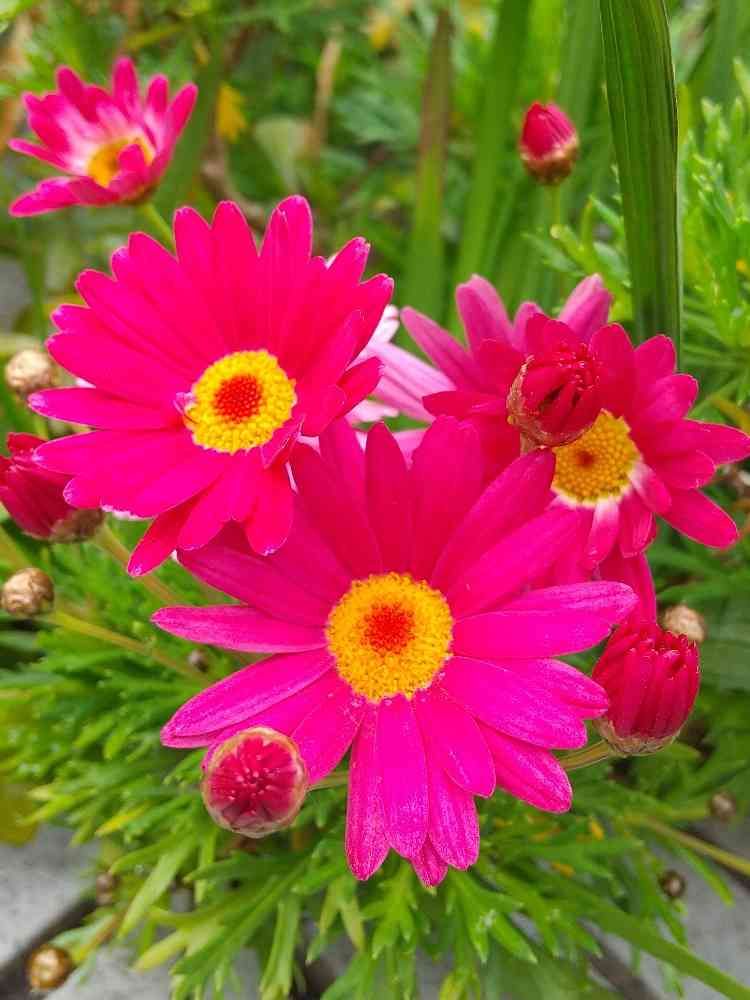 散歩の途中、目にとまりました。これからはいろいろな色のマーガレットを見られますね。😊🎶