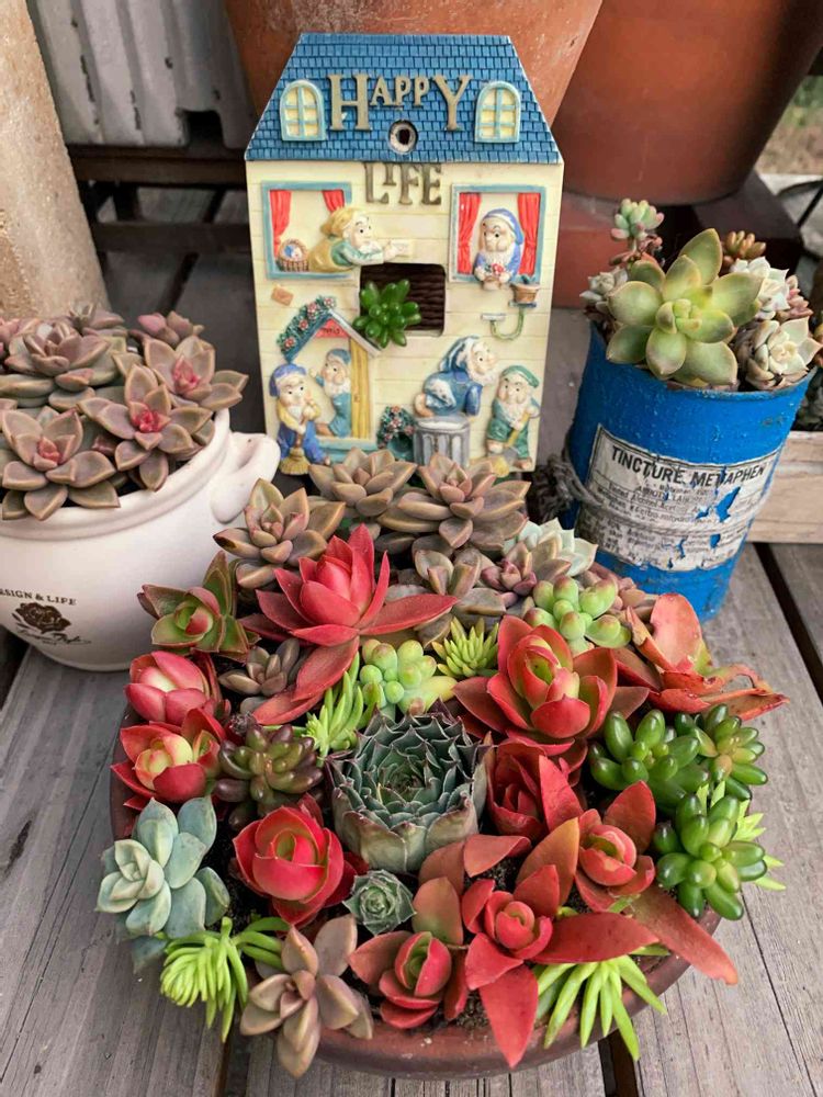 始まりは知り合いの方に頂いたたった1つの多肉植物からでした!それがいつの間にか庭中、様々な種類の多肉植物でいっぱいに💕 様々な器で寄せ植えしたりして楽しんでいます🍀 今は、友達の影響でドライフラワーにも夢中です🥰 家の中では農家をしていた夫の実家から出てきた古い農機具や昔の家具などをリメイクし自分で描いたトールペイントやパッチワークなどと共に飾りインテリアを楽しんでいます☺️