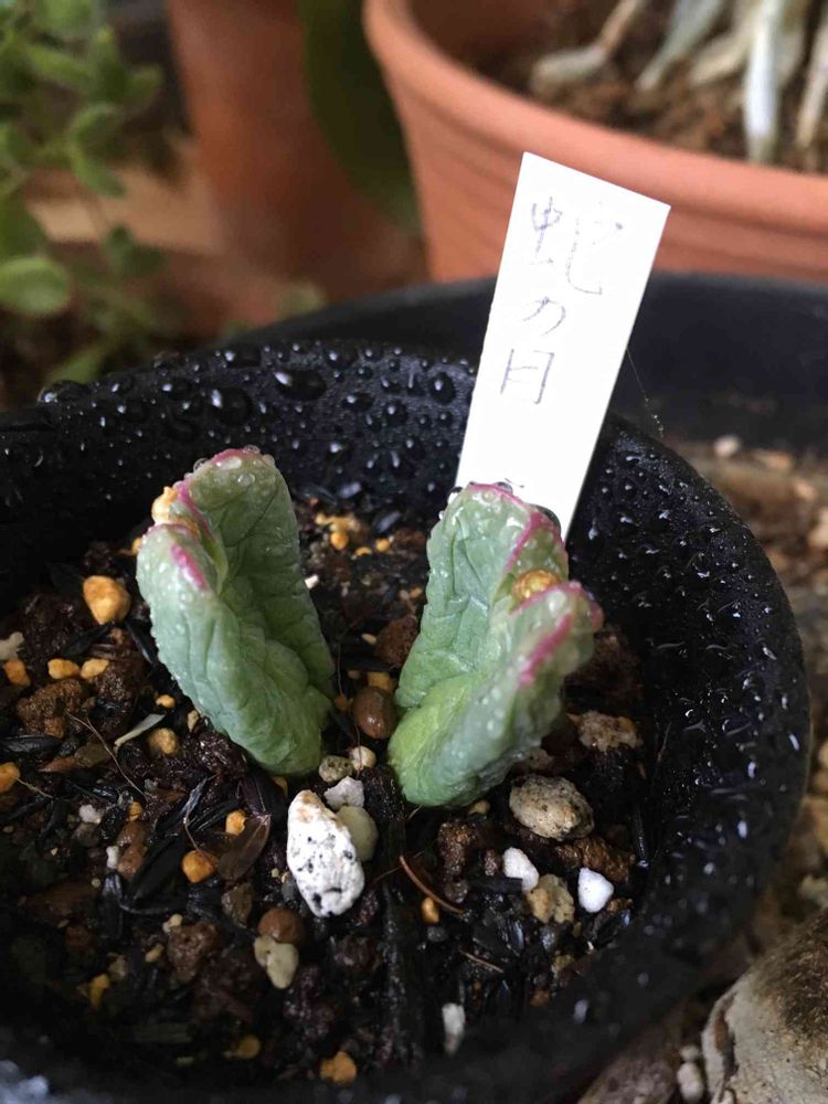 ホームセンターで見かけて、あまりにもシワシワだったので買ってきた。札には「蛇の目」と書いてあるんだが、ふむ、コノフィツムか。