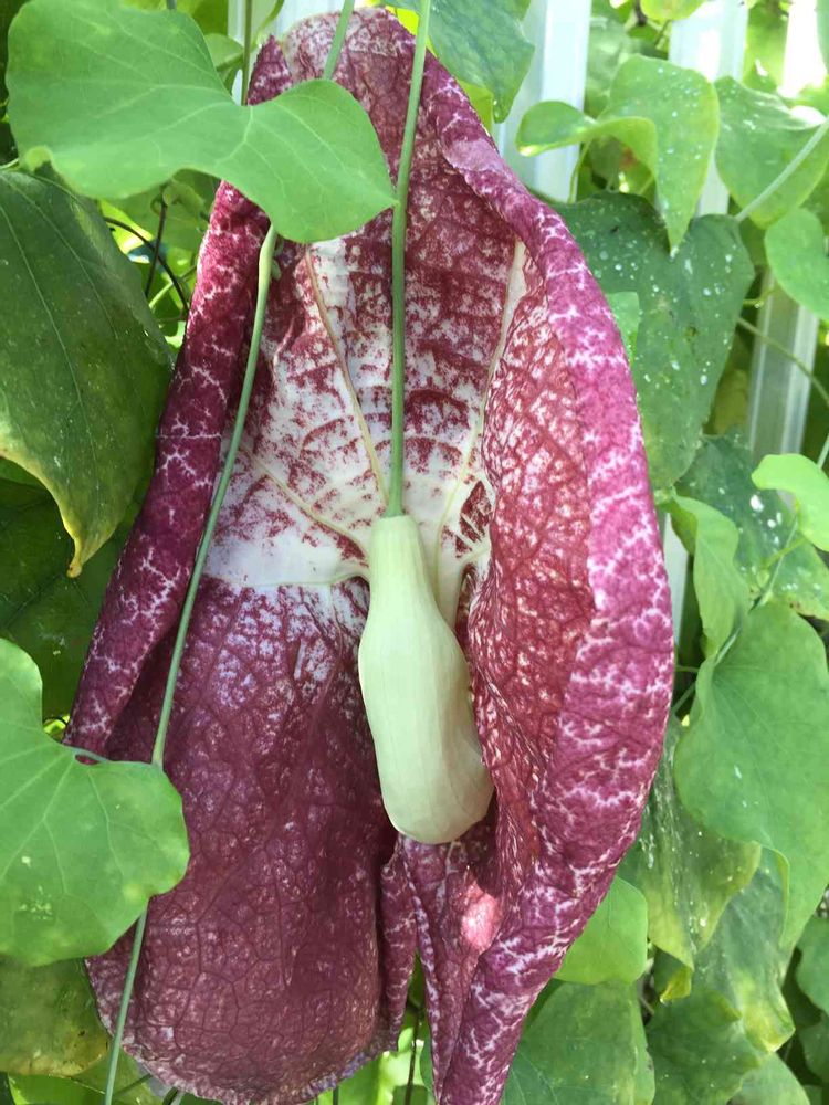 さん、確かにかわってます。日本にも暖かい地方には、ウマノスズクサと呼ばれる、アルストロキアの元のような植物があります。