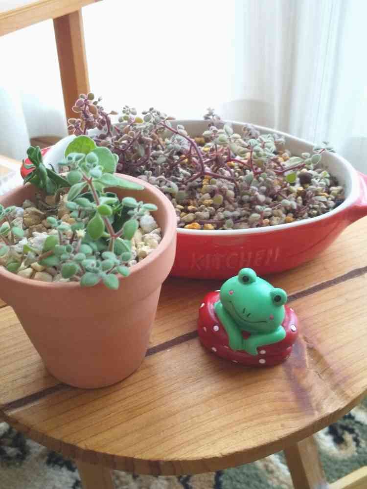 実験にセダムとの寄せ植え鉢を外に置いたらジュレさせました〰️。