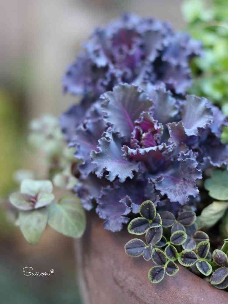 葉牡丹も、クローバーもダークな色合いで、ちょっと