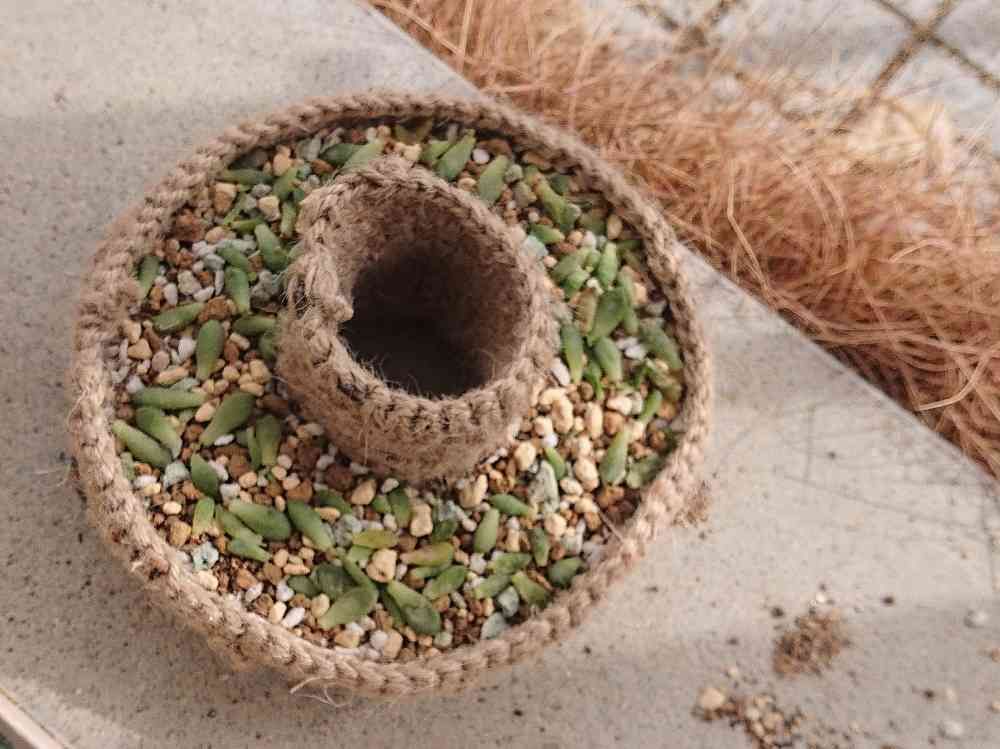麻紐でリース?風に編んでみましたが粗が目立ちますね😅