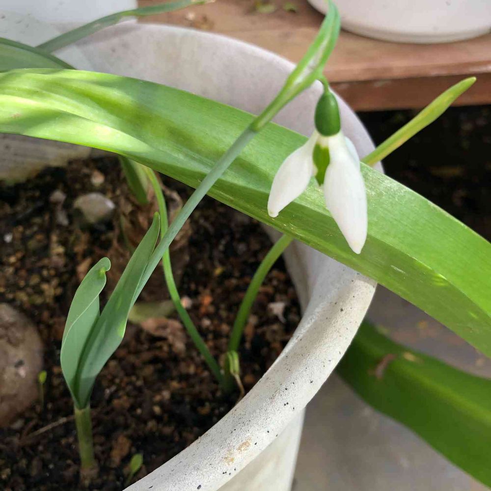 アマリリスのところに間借りして植えたスノードロップが開花してました!