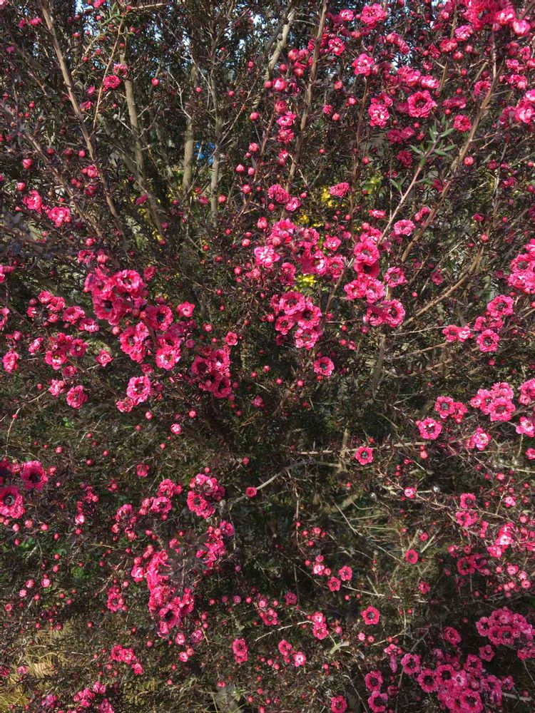 ニュージーランドやオーストリア原産の常緑低木で、細い枝に赤や桃、白などのウメの花に似た小さな花を多数咲かせます