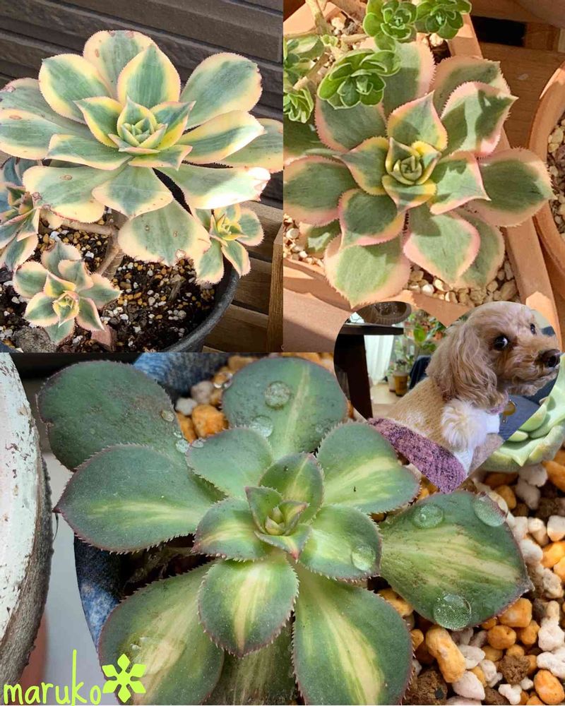 今日はよく似たアエオ達❣️ といっても上2つは同種のサンバースト🍀左は子株付きですが親子共シミが増えきました😬 同じくモカと私もシミが、、、😵 人も動物も植物も紫外線の当たりすぎは要注意ですね💧