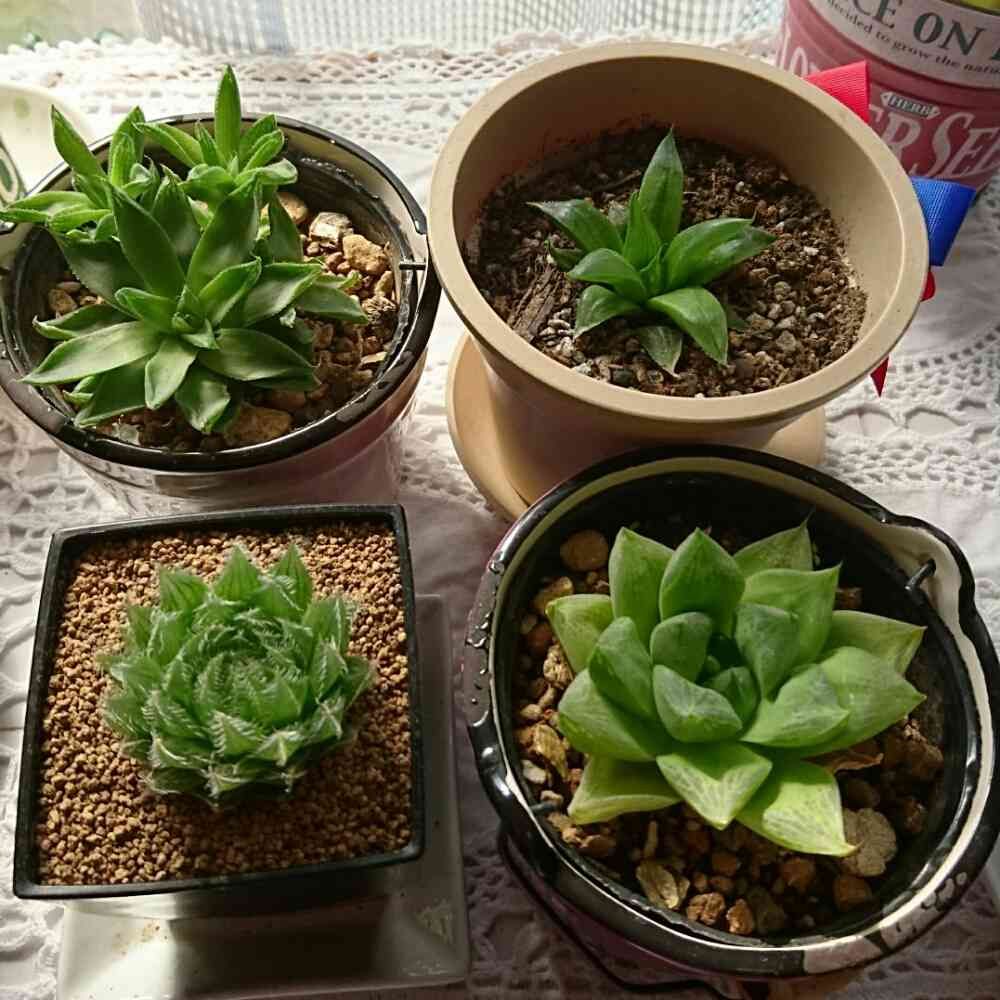 右上のハオルチアは、ダイソー産。植え替えた時は小さかったのに大分大きくなりました❤