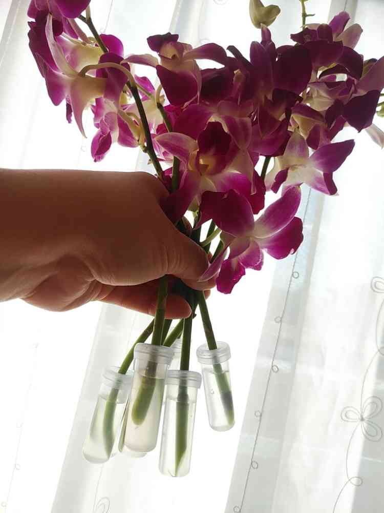 ただの水でしょうか?それとも栄養液も入っているのでしょうか?とてもデリケートな花なのでしょうか?切り口が空気に触れ痛まないようにされてるのかしら…🤔