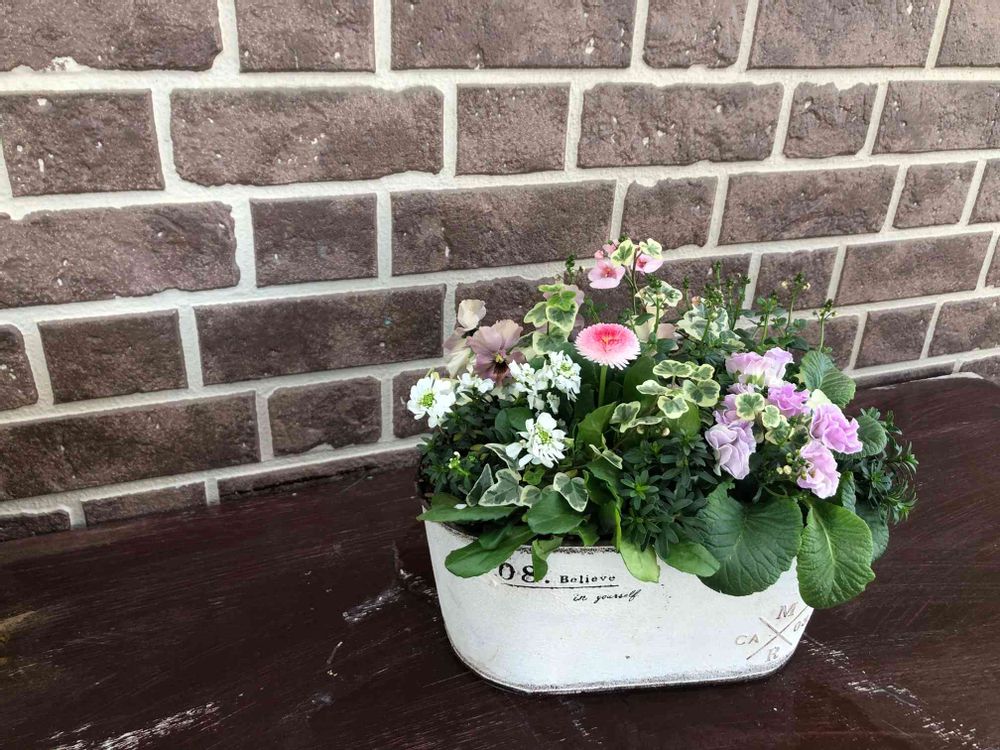 ダーラ・アップルブロッサムとデージー・ストロベリー&クリームを使った寄せ植えです😃