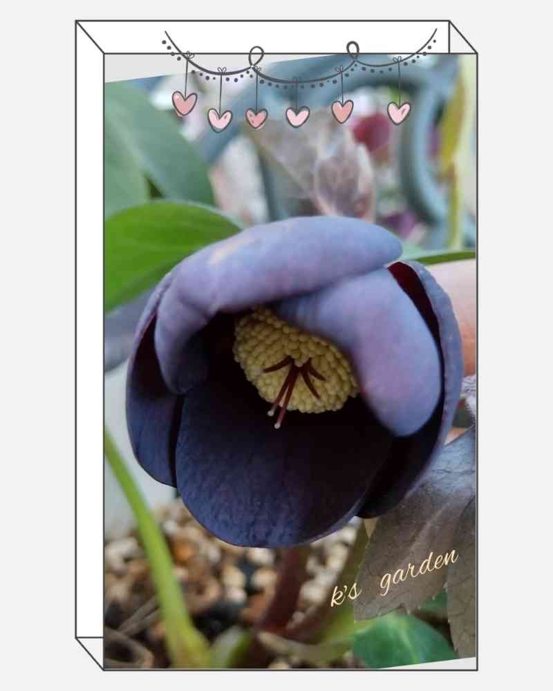 さん、今までクリスマスローズをいくつか見てきましたが、こんな深い色のクリスマスローズは見たことがありませんでした。クロリーさん、とても地味には見えません😊💕