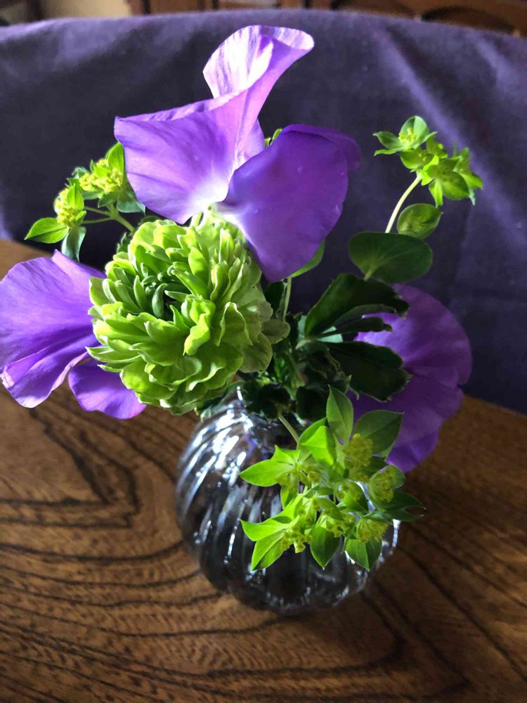スイトピーと一緒に入った緑のお花は、なんでしょう!?