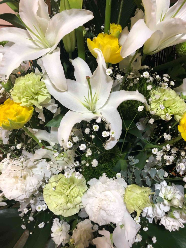真っ白なカサブランカを主役にかすみ草などをコラボ🤗