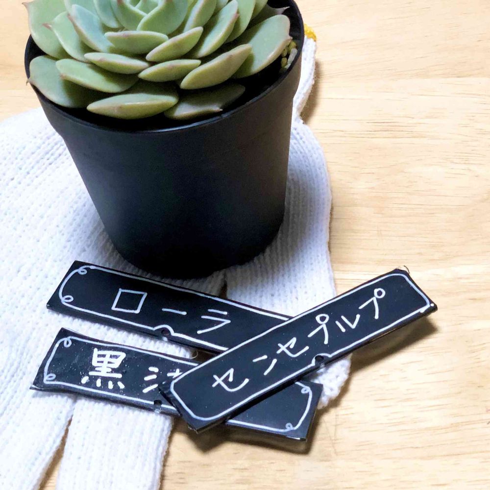 最初はセリアで見つけたうさぎ型の木製ピックを名札にしようと思っていたのだけれど、木製なので水やりするたびに土に触れてるところから腐っていき、うさぎちゃんのお顔がホラーになってきました💦