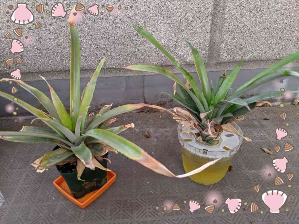 土壌のPhがあっていないのかもしれませんね。パイナップルはお水が好きなので水の方が吸い上げ易いのでしょう。