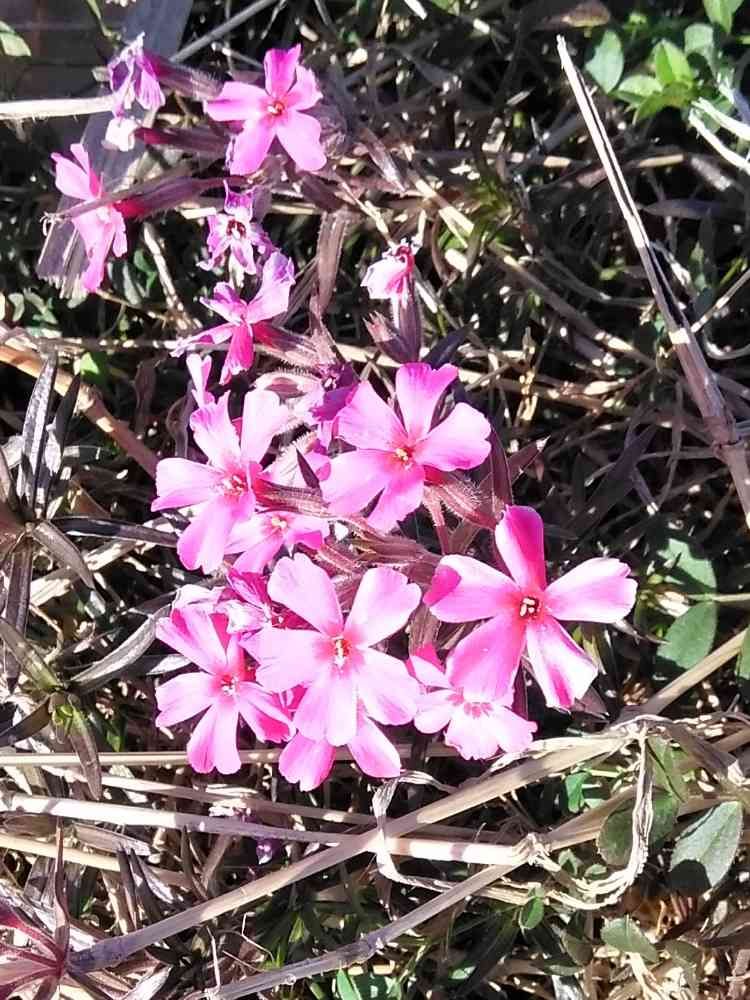 芝桜遊歩道の枯草の中に春を先取りしたようにかれんに咲いています。