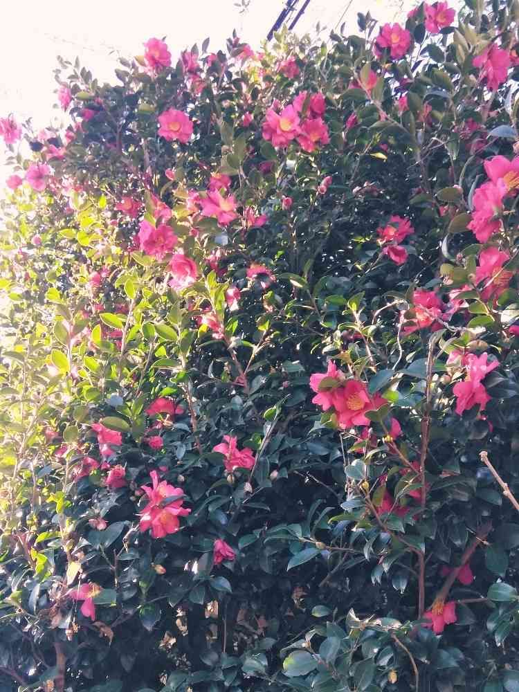 山茶花、手入れもしていないのに大きく、花もいっぱい咲かせてくれます
