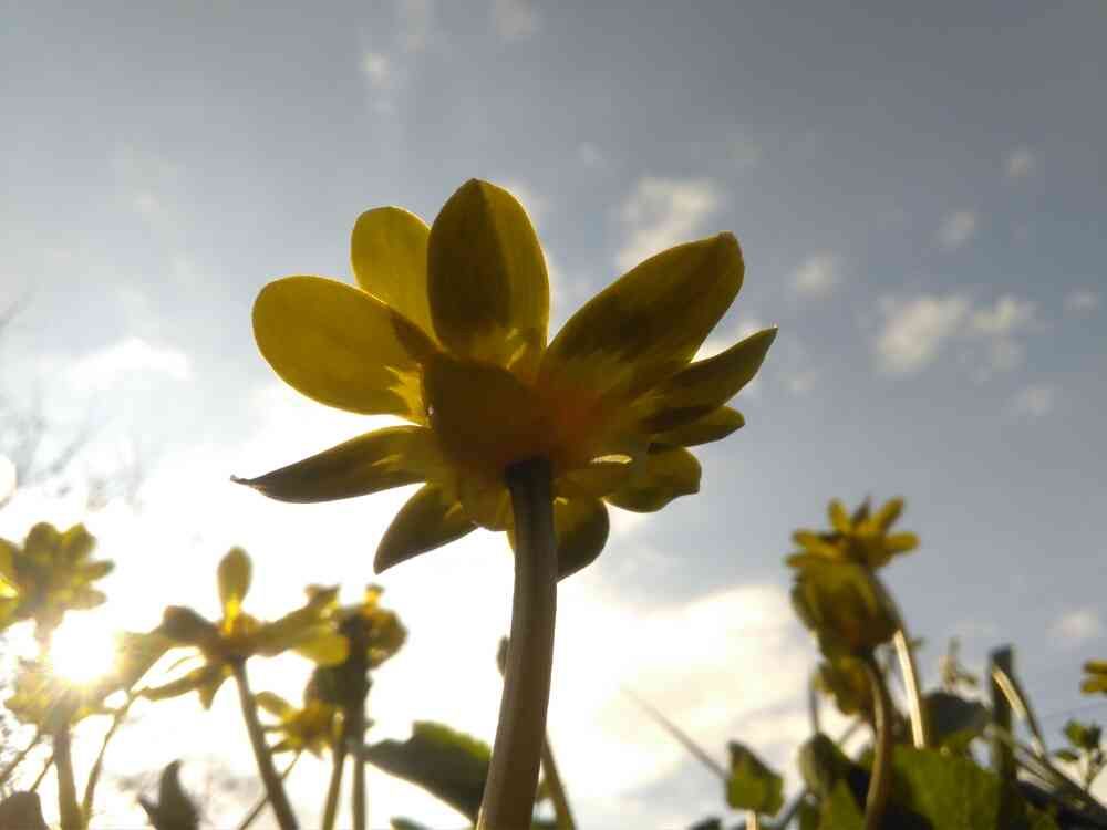 小さな可愛いヒメリュウキンカが背伸びしてお日様にご挨拶ですね。
