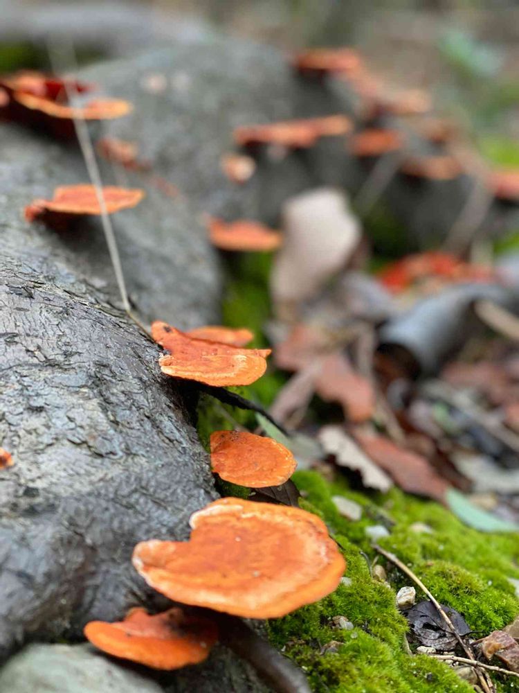 裏山はこの季節あまり花は咲いていませんが、こんなキノコを見つけました…ヒイロタケ…かな🤔?