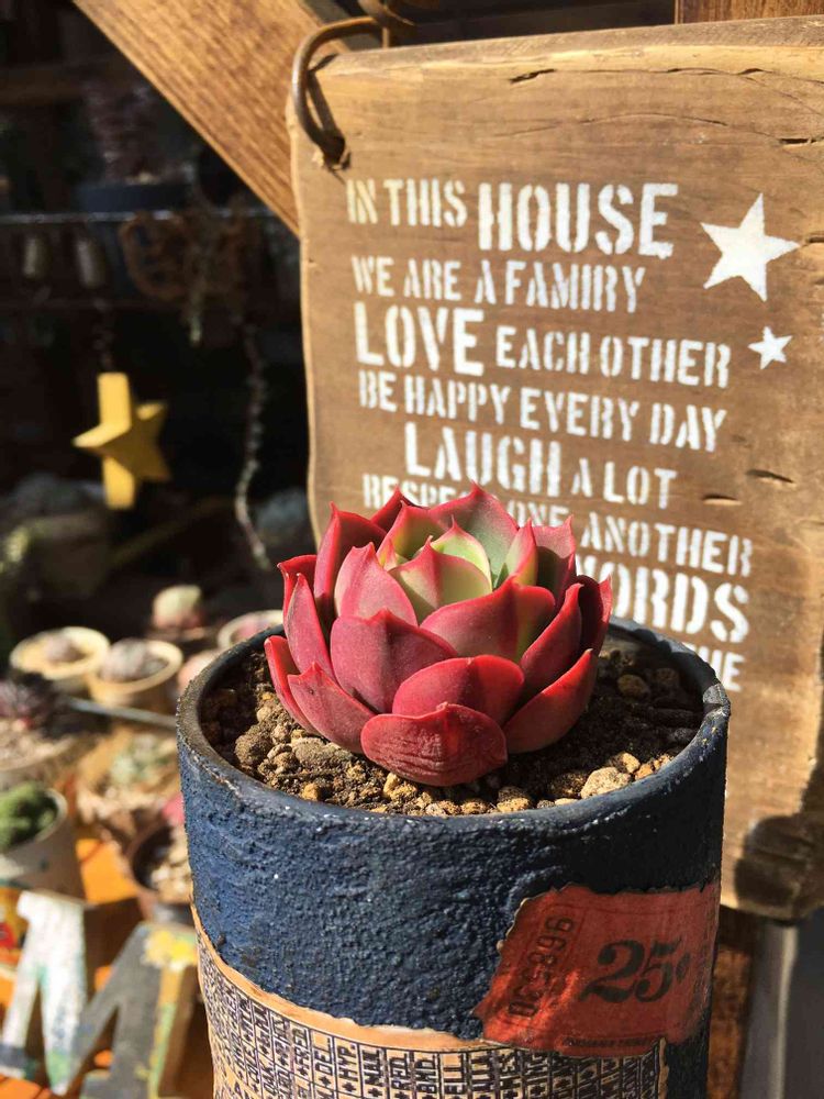 うんうん、板も鉢も真っ赤な多肉ちゃんも全部かわいい❗(*´ω`*)💕