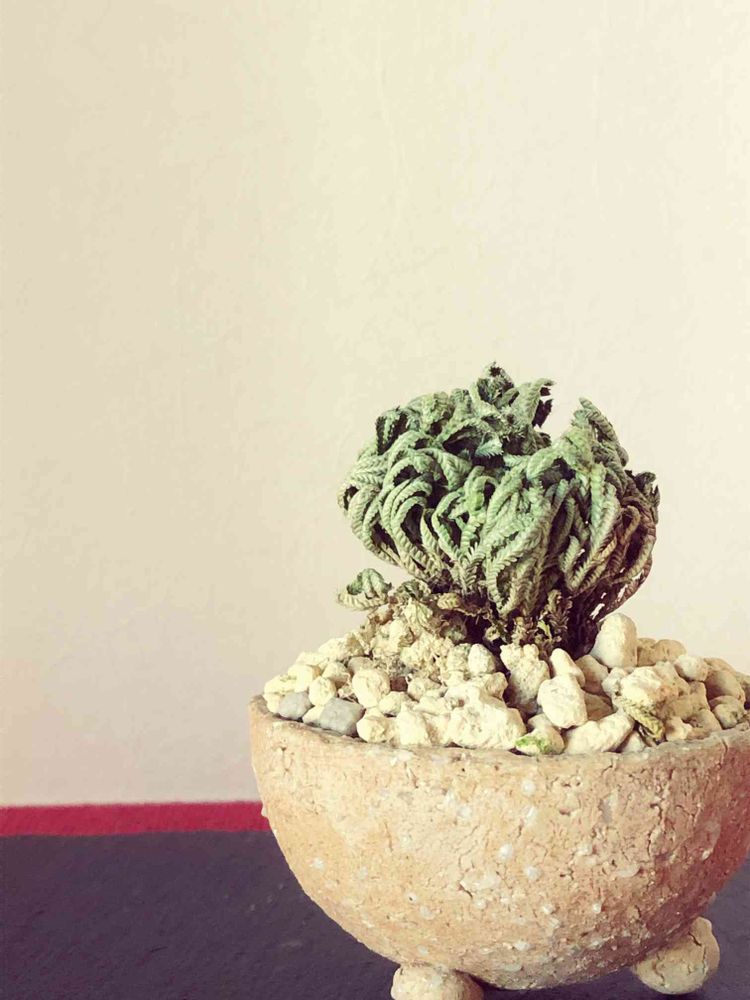 乾燥すると葉っぱを内側に丸めて新芽を守る性質があります。このことから、「稔り」「負けない心」という花言葉が付けられました。「長寿」は、一度植えると長い期間生き続けることに由来します。